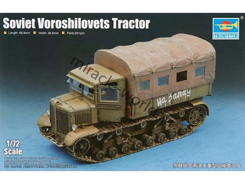 Сборная модель советского тяжелого артиллерийского тягача "Ворошиловец" в масштабе 1/72 от фирмы Trumpeter (артикул 07110).