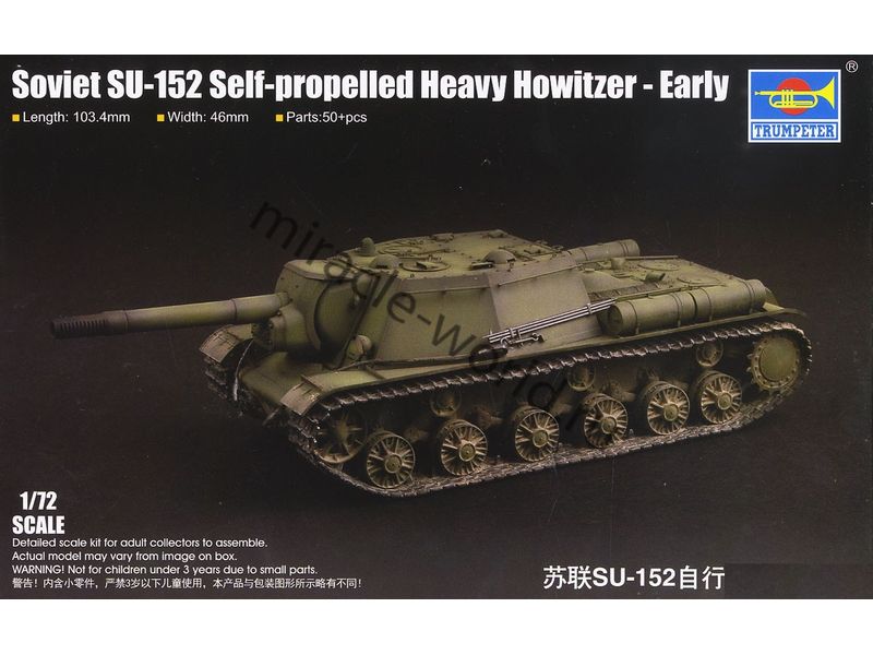 Сборная модель самоходной артиооерийской установки СУ-152 (152-мм, ранняя) "Зверобой" в масштабе 1/72 от фирмы Trumpeter (артикул 07129).