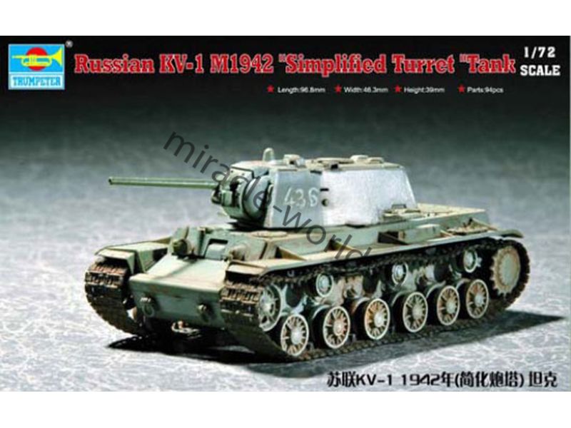 Сборная модель советского тяжелого танка КВ-1 образца 1942г. с облегченной башней в масштабе 1/72 от фирмы Trumpeter (артикул 07234).