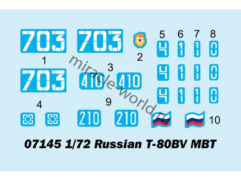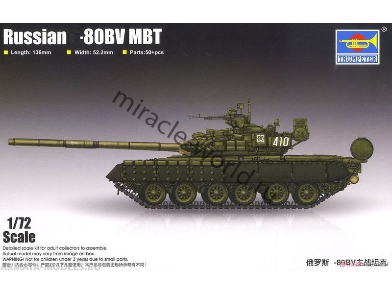Сборная модель советского / российского основного боевого танка Танк 80БВ в масштабе 1/72 от фирмы Trumpeter (артикул 07145).