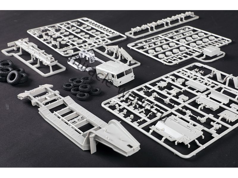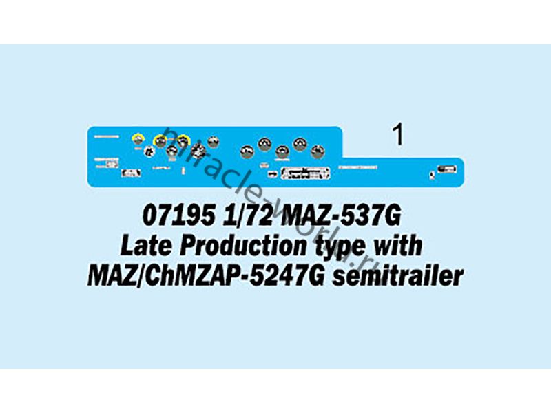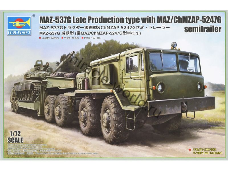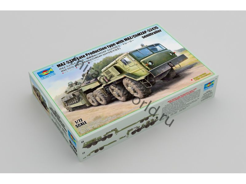 Сборная модель советского тяжелого седельного тягача МАЗ-537Г с полуприцепом МАЗ/ЧМЗАП-5247Г в масштабе 1/72 от фирмы Trumpeter (артикул 07195).
