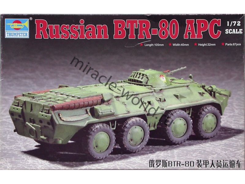 Сборная модель советского / российского бронетранспортера БТР-80 в масштабе 1/72 от фирмы Trumpeter (артикул 07267).