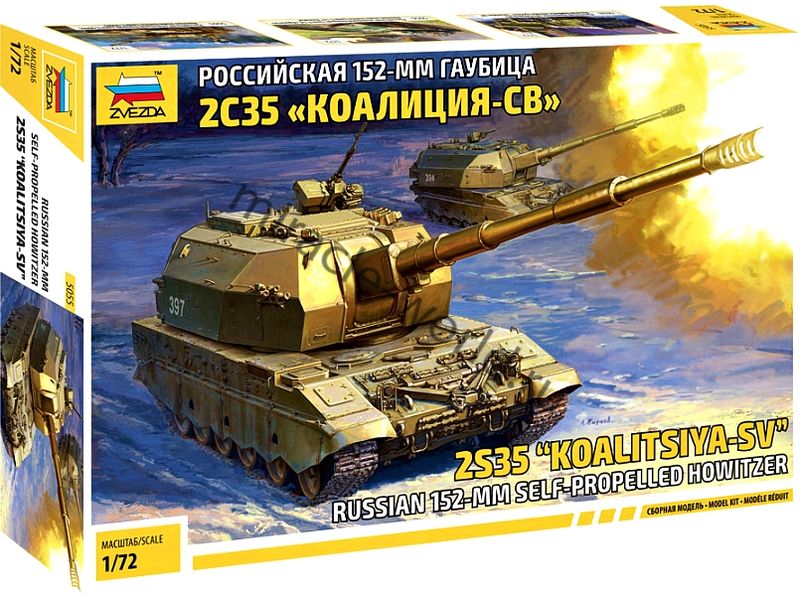 Сборная модель российской самоходной артиллерийской установки 2С35 «Коалиция-СВ» (152-мм) в масштабе 1/72 от фирмы Звезда / Zvezda (артикул 5055).
