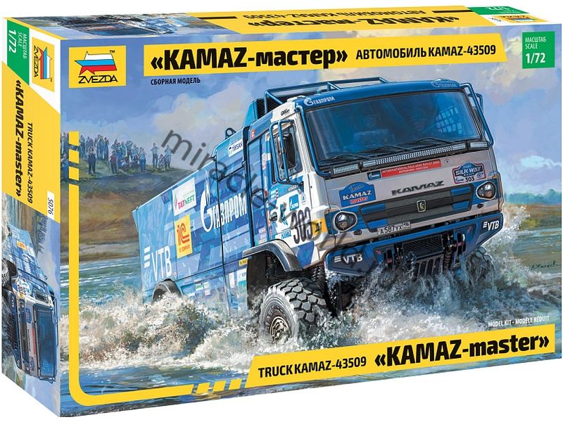 Сборная модель российского раллийного грузового автомобиля повышенной проходимости КамАЗ-43509 "KAMAZ-Master" в масштабе 1/72 от фирмы Звезда / Zvezda (артикул 5076).