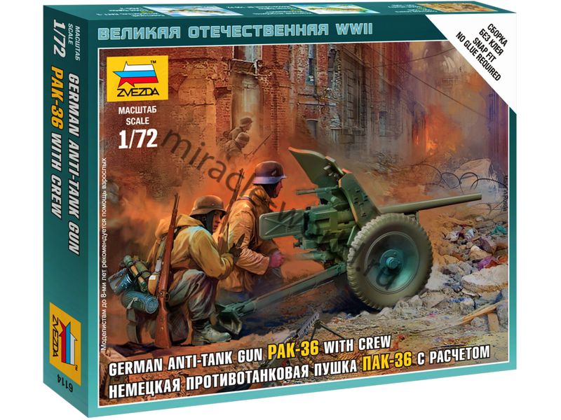 Сборная модель немецкой 37-мм противотанковой пушки PaK 35/36 (37-мм) образца 1935/1936г. с расчетом в масштабе 1/72 от фирмы Звезда / Zvezda (артикул 6114).