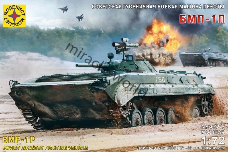 Сборная модель советской бронированной боевой машины БМП-1П с ПТРК 9К111 «Фагот» в масштабе 1/72 от фирмы Моделист (артикул 307273).