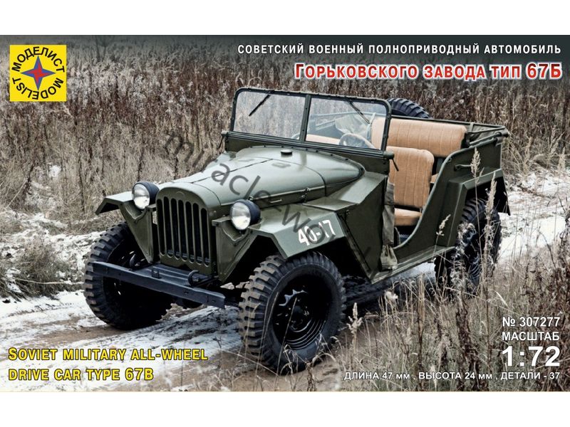Сборная модель советского автомобиля повышенной проходимости Автомобиль (Г) тип 67Б в масштабе 1/72 от фирмы Моделист (артикул 307277).