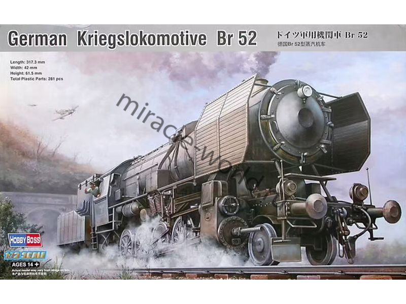 Сборная модель немецкого военного паровоза BR 52 (DRB Class 52) в масштабе 1/72 от фирмы Hobby Boss (артикул 82901).