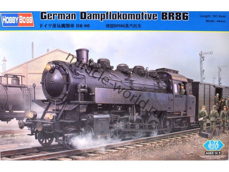 Сборная модель немецкого грузового паровоза BR 86 (DRG Class 86) в масштабе 1/72 от фирмы Hobby Boss (артикул 82914).