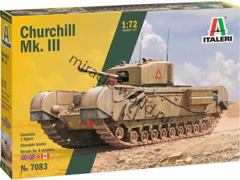 Сборная модель британского пехотного танка Churchill Mk.III в масштабе 1/72 от фирмы Italeri (артикул 7083).