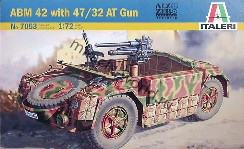 Сборная модель итальянского бронеавтомобиля ABM 42 with 47/32 AT Gun в масштабе 1/72 от фирмы Italeri (артикул 7053).