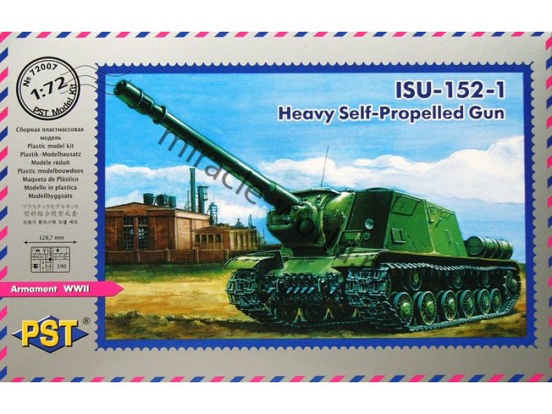 Сборная модель ИСУ-152-1 (152-мм БЛ-8) в масштабе 1/72 от фирмы PST (артикул 72007).