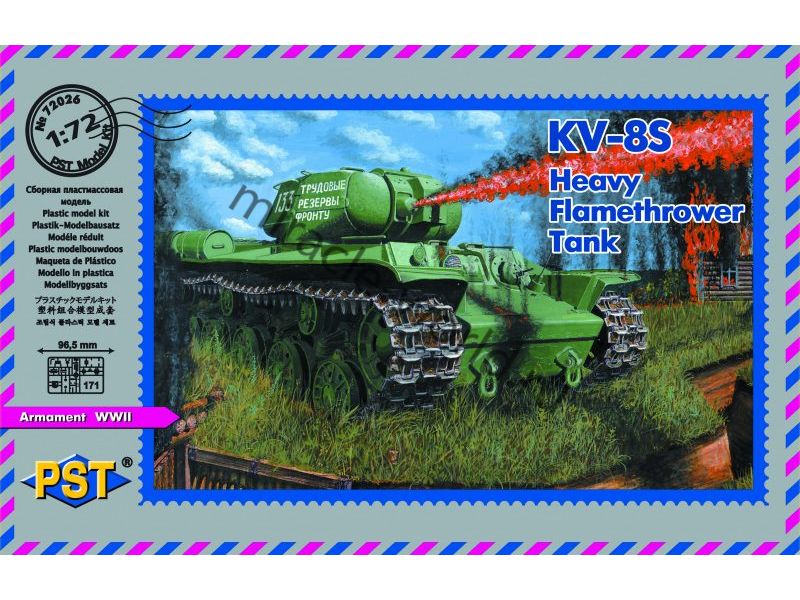 Сборная модель советского тяжелого огнеметного танка КВ-8С в масштабе 1/72 от фирмы PST (артикул 72026).