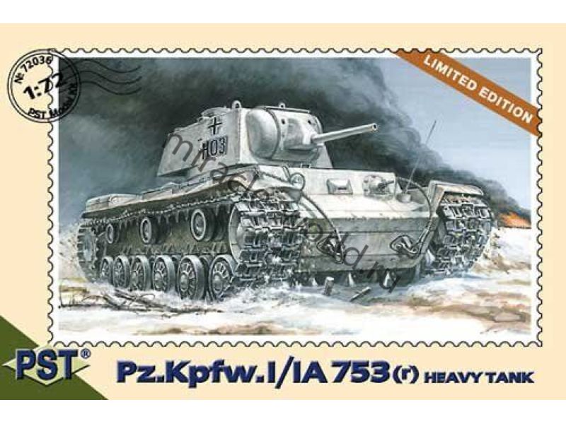 Сборная модель советского трофейного тяжелого танка в немецкой эксплуатации Pz.Kpfw. KV-1 753(r) / КВ-1 в масштабе 1/72 от фирмы PST (артикул 72036).