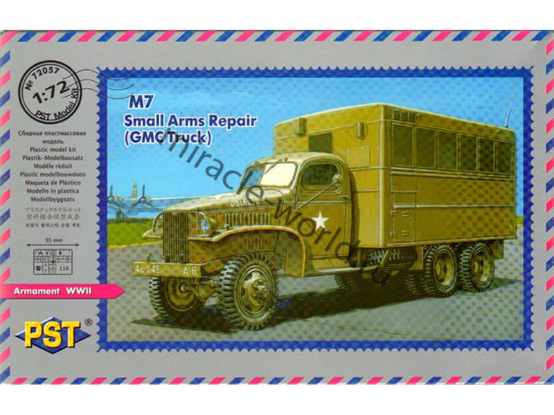 Сборная модель американской передвижной авторемонтной мастерской M7 на базе GMC CCKW-352 в масштабе 1/72 от фирмы PST (артикул 72057).