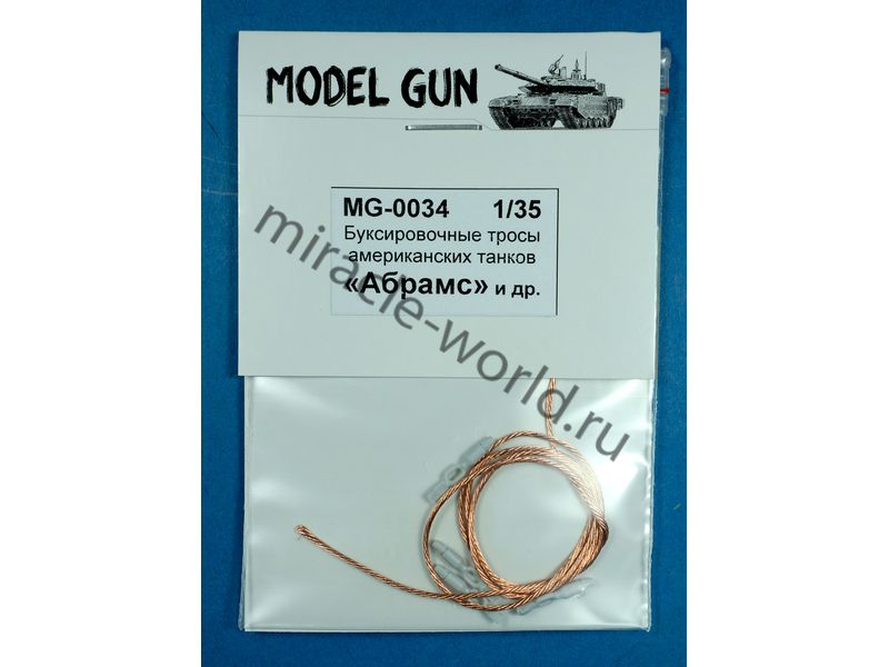 Дополнение для сборных моделей, буксировочные тросы и коуши для американских основных боевых танков, боевых машин пехоты и бронетранспортеров: M1A1 / M1A2 "Abrams", M113, "Bradley" (2шт. в наборе) в масштабе 1/35 от фирмы Model Gun (артикул MG-0034).