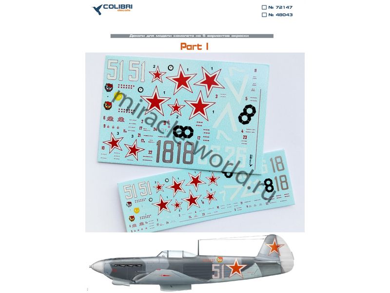 Colibri Decals 48043 Декаль: Самолет (Я) тип 9Д. Часть 1 /5 вариантов маркировки/ 1/48