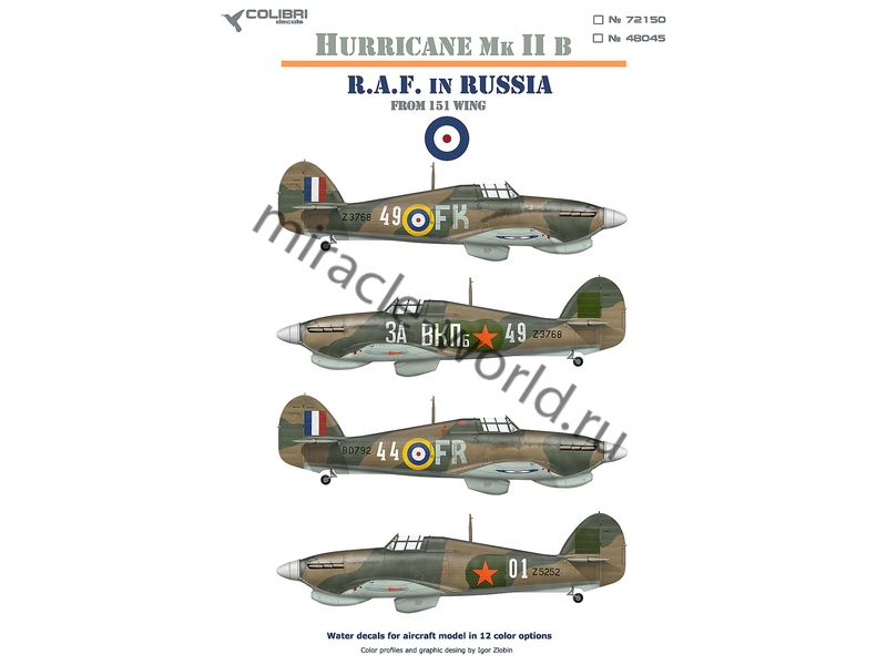 Colibri Decals 48045 Декаль: Hawker Hurricane Mk.IIB "151 Wing in USSR" /12 вар. маркировки/ 1/48
