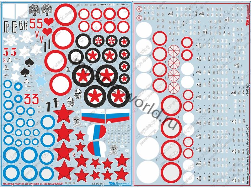 Begemot 48-034 Декаль: N.21 / Nieuport 21 (Nieuport). Россия в I мировой войне /35 вариантов/ 1/48