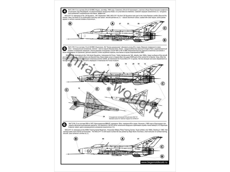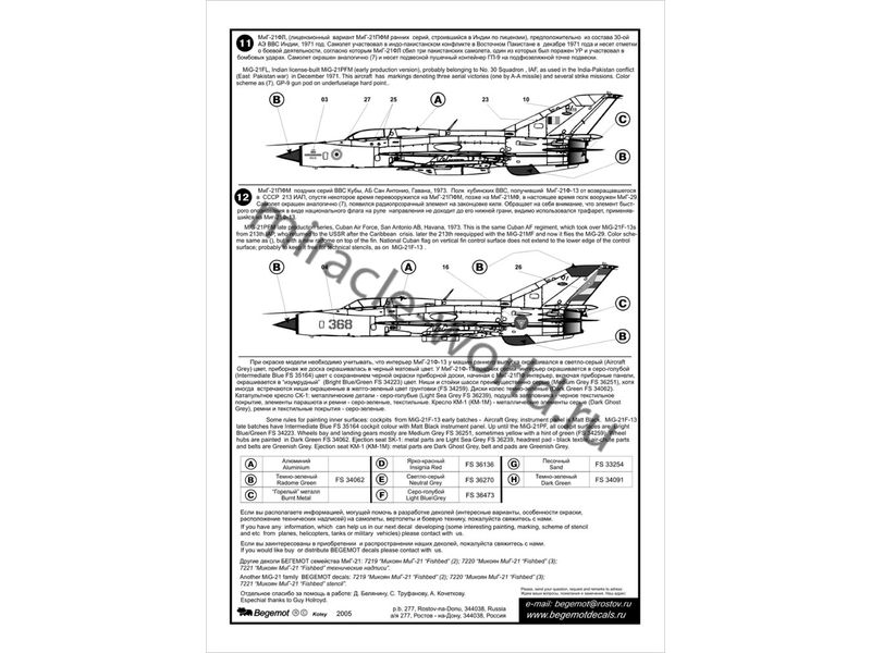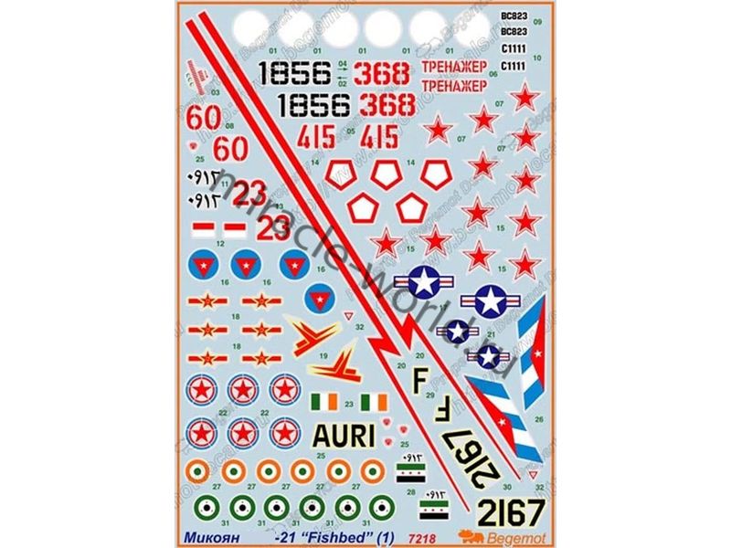 Begemot 72-018 Декаль: МиГ-21. Набор №1 /12 вариантов маркировки/ 1/72