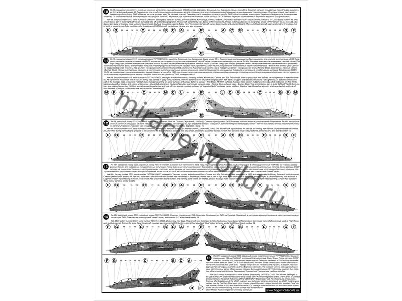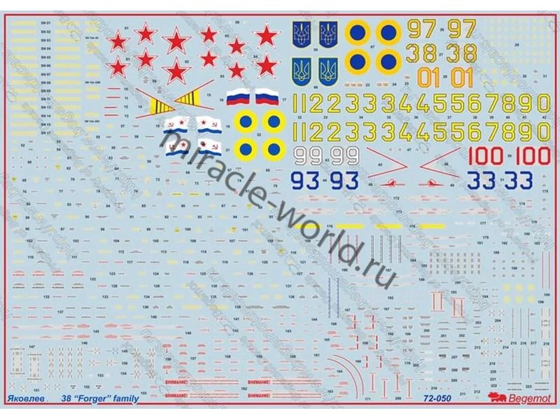 Begemot 72-050 Декаль: Як-38 /24 варианта + технические надписи + вооружение/ 1/72