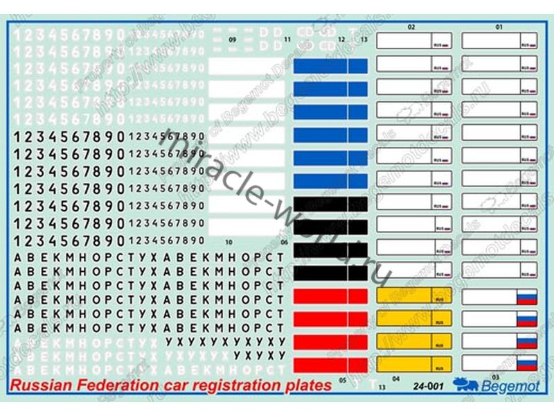 Begemot 24-001 Декаль: Регистрационные номера машин Российской Федерации 1/24