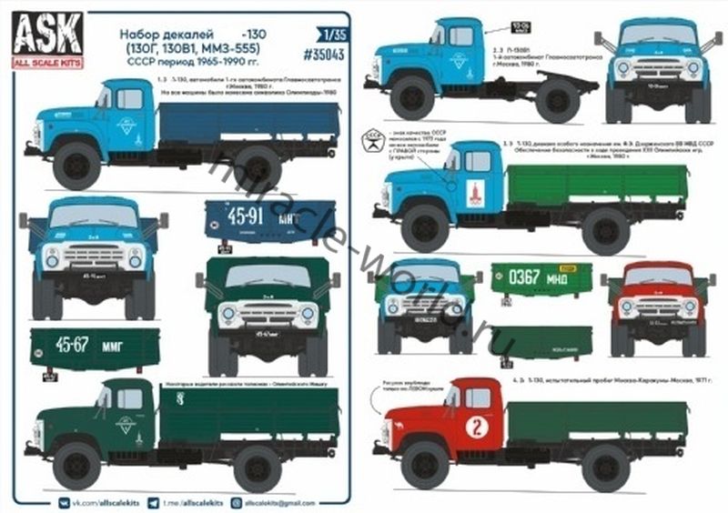 ASK 35043 Декаль: ЗиЛ-130 (130Г, 130В1, ММЗ-555) на период СССР 1965-1990 гг. 1/35