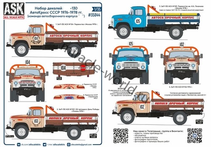 ASK 35044 Декаль: ЗиЛ-130 "Автокросс" ч.1 (команда автосборочного корпуса ЗиЛ) 1976-1978 гг. 1/35
