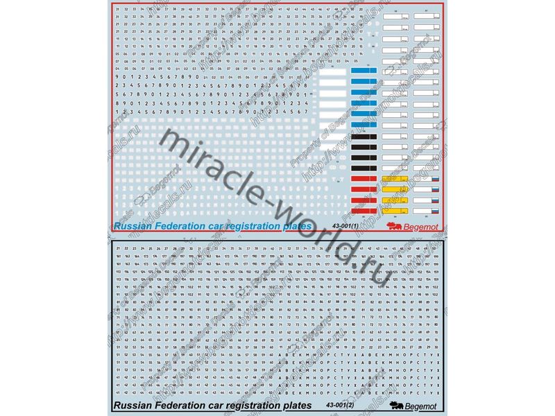 Begemot 43-001 Декаль: Регистрационные номера машин Российской Федерации 1/43