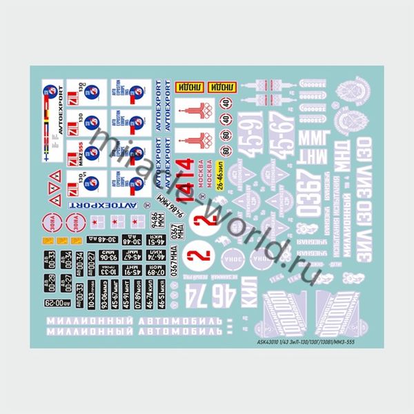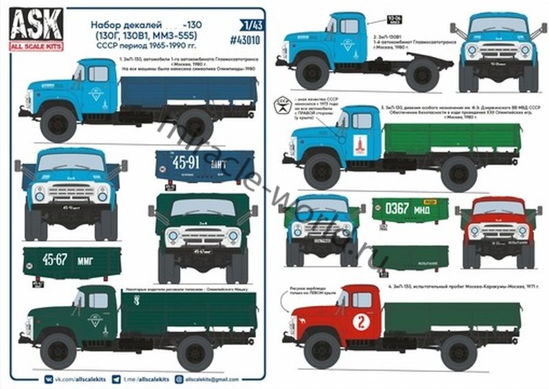ASK 43010 Декаль: ЗиЛ-130 (130Г, 130В1, ММЗ-555) на период СССР 1965-1990 гг. 1/43