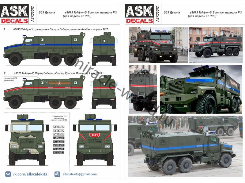ASK 35012 Декаль: УАЗ-63095 "Тайфун-У" Военная полиция РФ 1/35