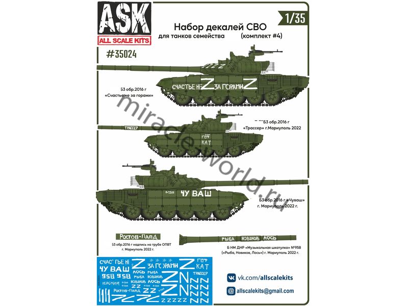 ASK 35024 Декаль: СВО (для танков семейства Т-72, "Счастье не за горами", "Чуваш"...) №4 1/35