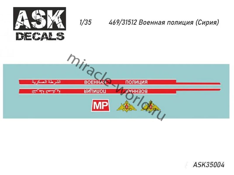 ASK 35004 Декаль: УАЗ-469/31512 Военная полиция (Сирия) 1/35