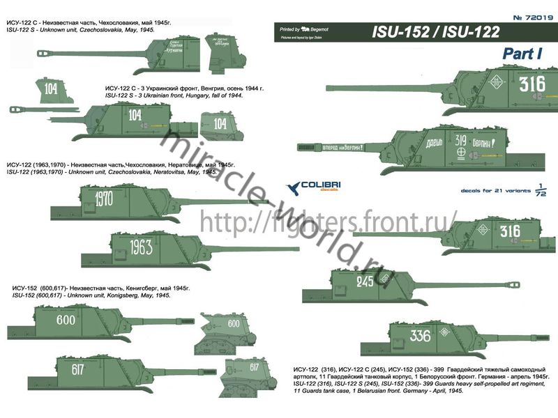 Colibri Decals 35018 Декаль: ИСУ-152 / ИСУ-122. Часть 1 /21 вариант/ 1/35