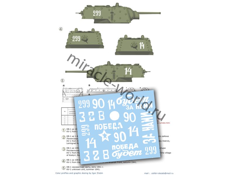 Colibri Decals 35073 Декаль: КВ-1 (экранированные). Часть 1 /7 вариантов маркировки/ 1/35
