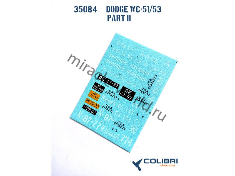 Colibri Decals 35084 Декаль: Dodge WC-51 / Dodge WC-52 /9 вариантов маркировки/ 1/35