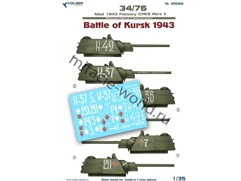 Colibri Decals 35089 Декаль: Танк тип 34/76 обр. 1942/43 Завод ЧКЗ. №2 "Битва за Курск" /8 в./ 1/35