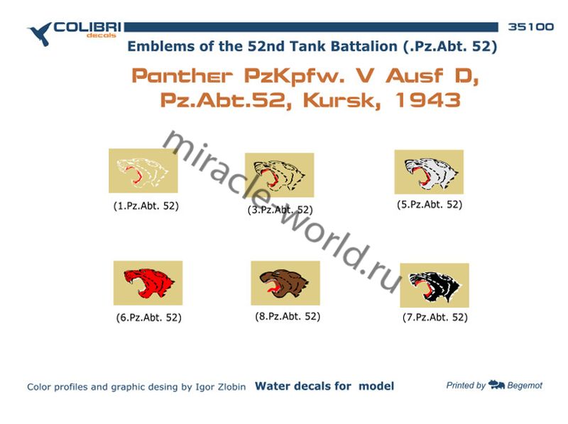 Colibri Decals 35100 Декаль: Emblems of the 52nd Tank Battalion "Pz.Abt. 52" 1/35