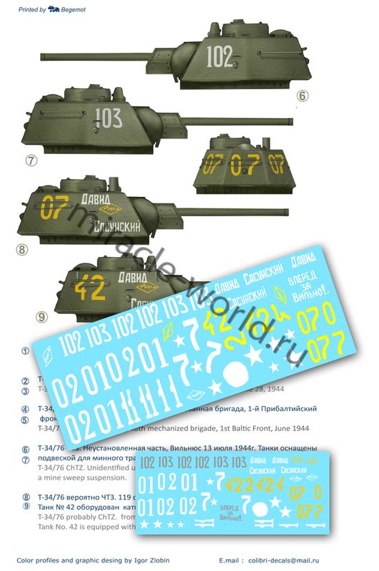 Colibri Decals 35104 Декаль: Танк тип 34/76 "Операция Багратион" 1/35