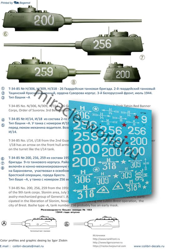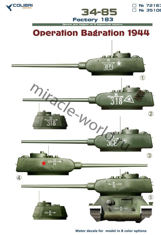 Colibri Decals 35106 Декаль: Танк тип 34/85 "Операция Багратион" Завод № 183 1/35