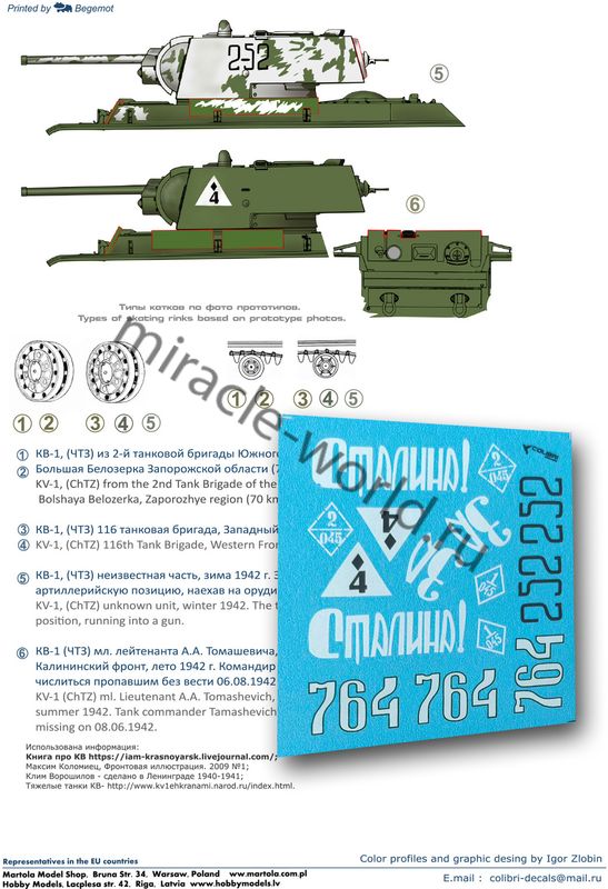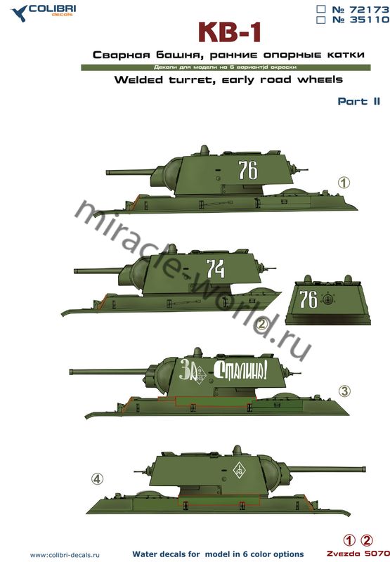 Colibri Decals 35110 Декаль: КВ-1 сварная башня, ранние опорные катки. Часть 2 /6 вариантов/ 1/35