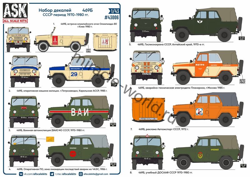 ASK 43006 Декаль: УАЗ-469 - СССР 1970-1980 гг. 1/43