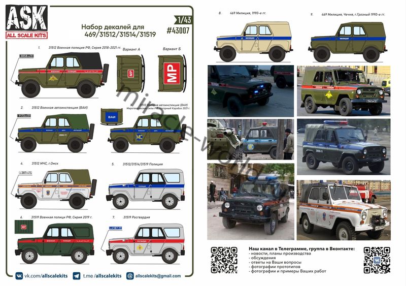 ASK 43007 Декаль: УАЗ-469/31512/31514/31519 1/43