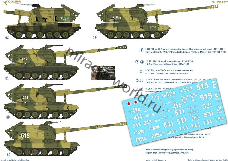 Colibri Decals 72127 Декаль: САУ 2С19. Часть 2 /14 вариантов маркировки/ 1/72