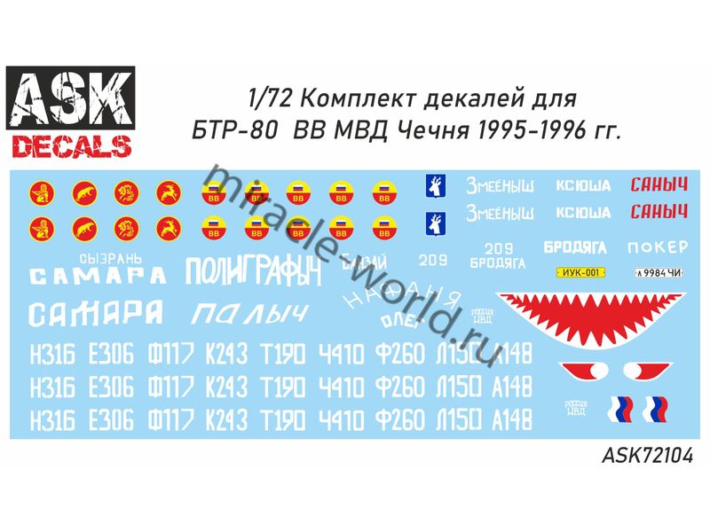 ASK 72104 Декаль: БТР-80 ВВ МВД 1995-1996 гг. (Чечня) 1/72
