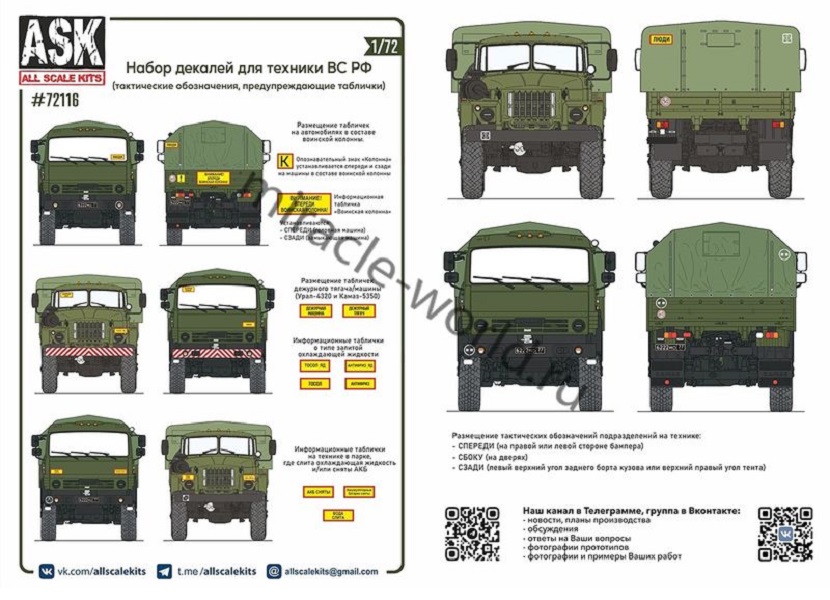 ASK 72116 Декаль: Военная техника ВС РФ (таблички, тактические обозначения подразделений) 1/72