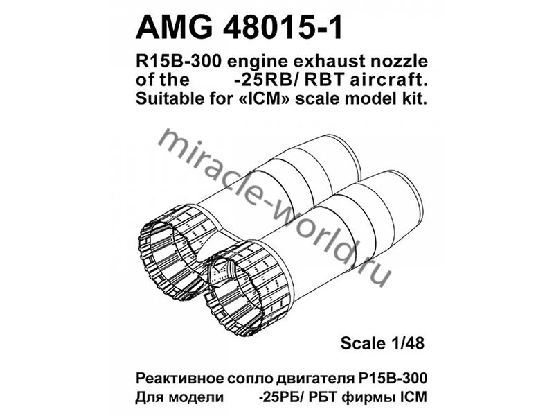 Подходит для моделей Самолет (М) тип 25РБ, Самолет (М) тип 25РБТ. В комплект входят детали реактивного сопла, форсажной трубы, стабилизатора пламени и фронтального устройства. Рекомендуется для моделей "ICM".