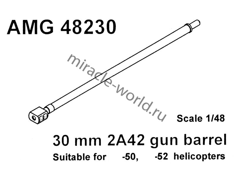 Дополнение для сборных моделей авиации Ствол 30-мм пушки 2А42 Вертолет (К) тип 50 / Вертолет (К) тип 52 в масштабе 1/48 от фирмы AMigo models (артикул 48230).