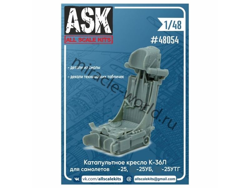 Дополнение для сборных моделей авиации Кресло катапультное К-36Л (1шт. в наборе + декаль) в масштабе 1/48 от фирмы ASK / All Scale Kits (артикул 48054).