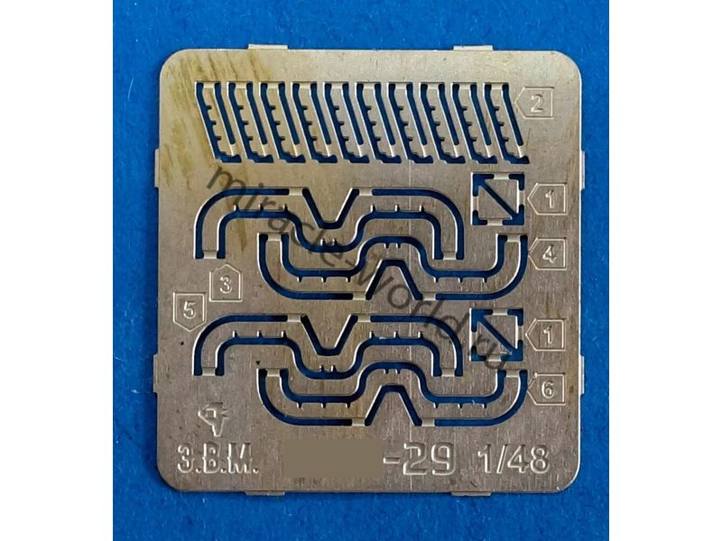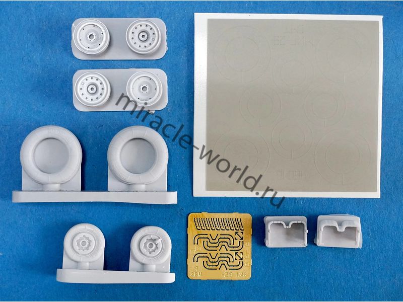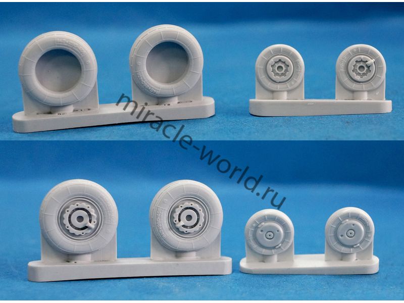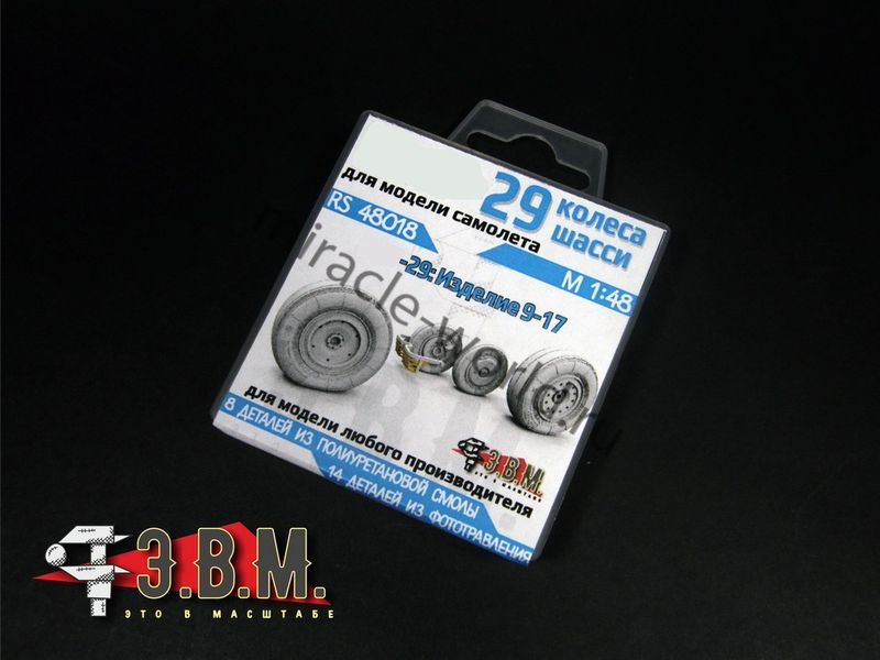 RS48018 Колеса шасси самолета МиГ-29 (9-17). Масштаб 1/48. Набор комплектуется смоляными колесами с имитацией нагрузки, двумя вариантами ступиц основных колес, платой фототравления и окрасочными масками.